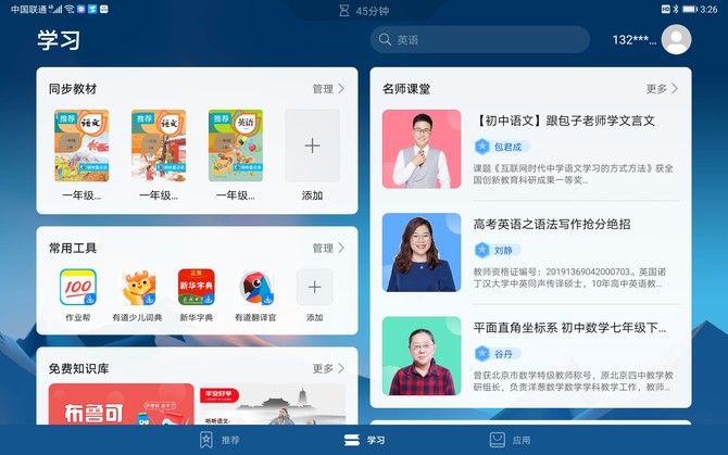 在教育中心可以同步各个阶段的教材,根据学习阶段、科目、版本查找教材,操作快速简便。还有专属名师课堂,名师来讲解,孩子更易懂。教育中心联动荣耀应用市场教育频道,多种教育工具一键获取。
